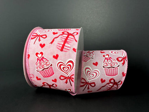 40 in stockPink Stn/Vday Cupcakes N Macarons, 2.5"X10Y 11519-40-12