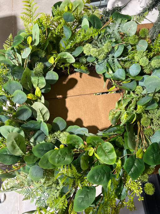 30" Eucalyptus&Pom Wreath 26S012M-GRN