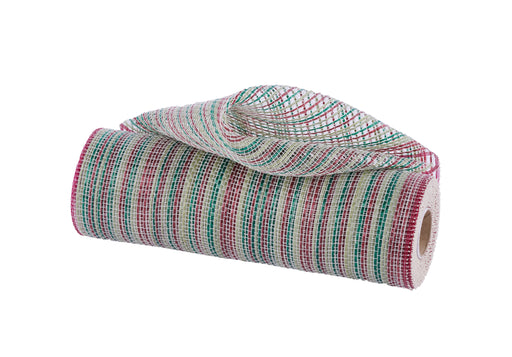 20 in stock10"X10Yd Vertical Multicolor Stripe Mesh Burgundy/Sage/Hunter/Crm RE1369YH